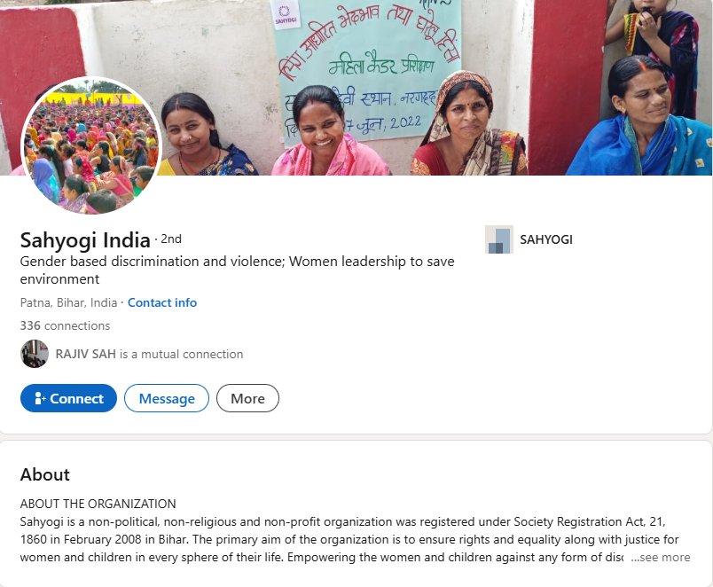 Sahyogi is a non-political, non-religious, and not-for-profit organization, formally registered under the Society Registration Act (21 of 1860) in February 2008 in Bihar. Sahyogi is duly registered under the Income Tax Act for tax exemptions under Sections 12AB and 80G, and is also registered under the FCRA and CSR provisions.